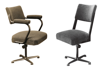 約6年の歳月をかけて、FK式単脚単球回転イスが誕生しました。FKは深澤幸也の頭文字から取っています。最初に納入されたのは、開発翌年の1935年のこと。納入先は、東京帝国大学工学部建築科でした。このFK式回転イスは、多くの特許や実用新案を得て、連結イスや学生机イスと共に、寿商店の主力商品となっていくのです。
