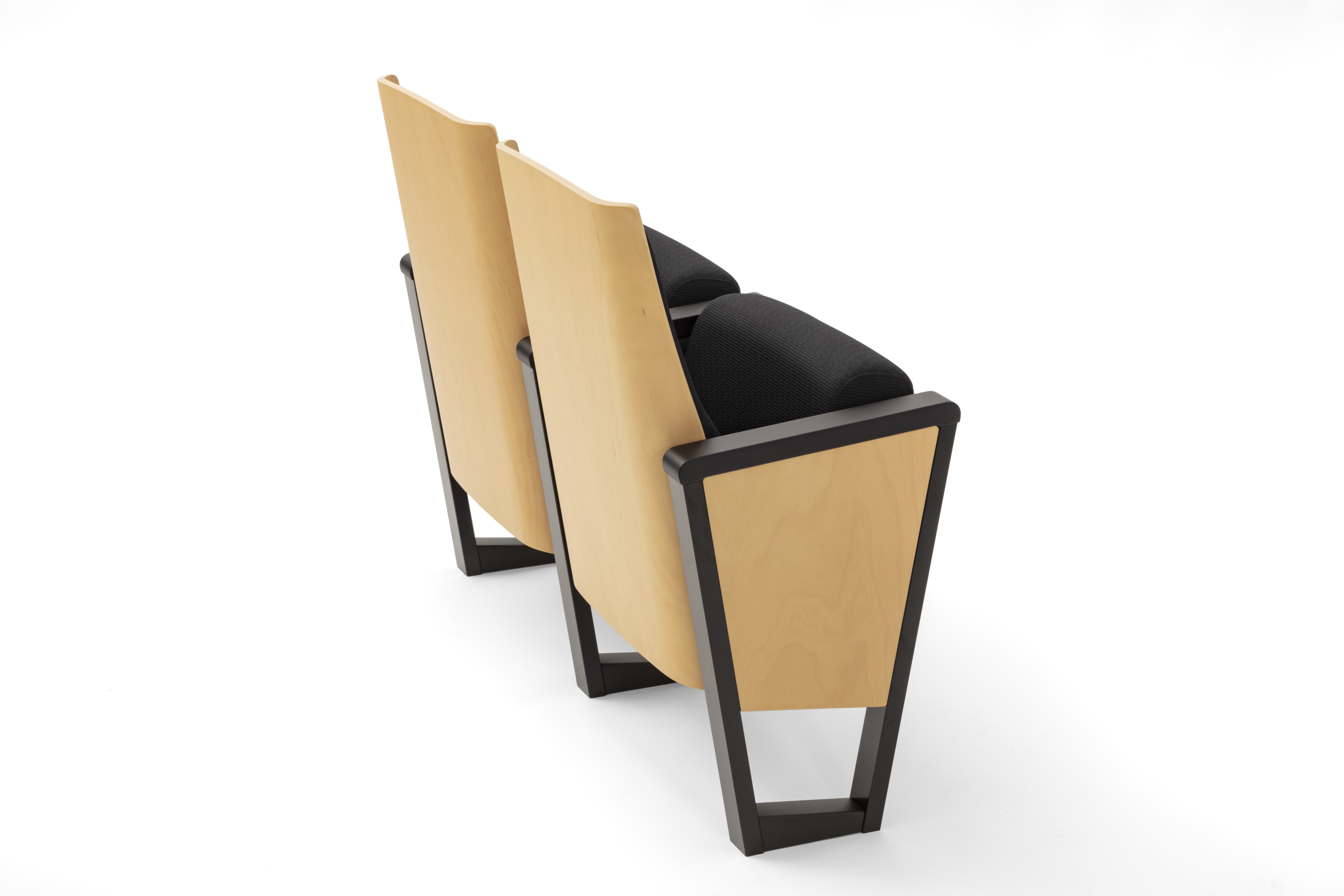 The loop-shaped leg design creates a light and airy visual effect. The wooden armrests offer warmth to the touch and are precision-engineered to appear as a single, unified element with the outer steel frame. This refined structural expression allows the seat to integrate beautifully into contemporary theater environments, lending a modern yet inviting presence.