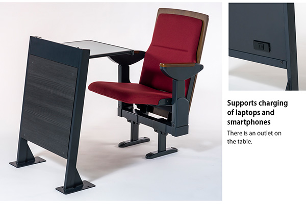 With built-in serpentine springs, the seats have the same structure as a fixed-type auditorium chair. This marks a departure from traditional retractable spectator seating and delivers the ultimate in comfort.