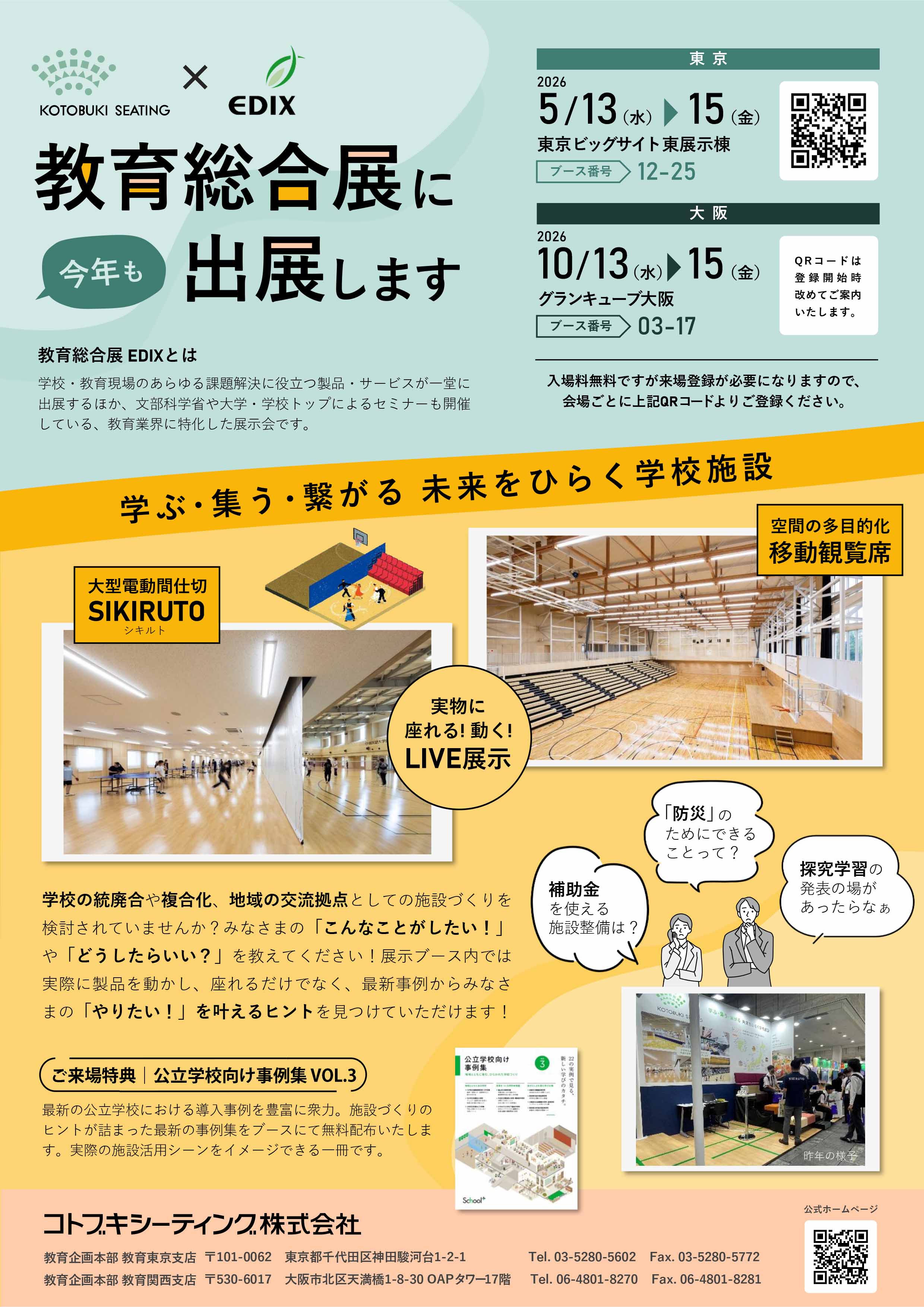 コトブキシーティング株式会社は、2026年5月13日(水)~15日(金)に、東京ビッグサイトにて開催される「第17回 EDIX(教育総合展)東京」へ出展します。