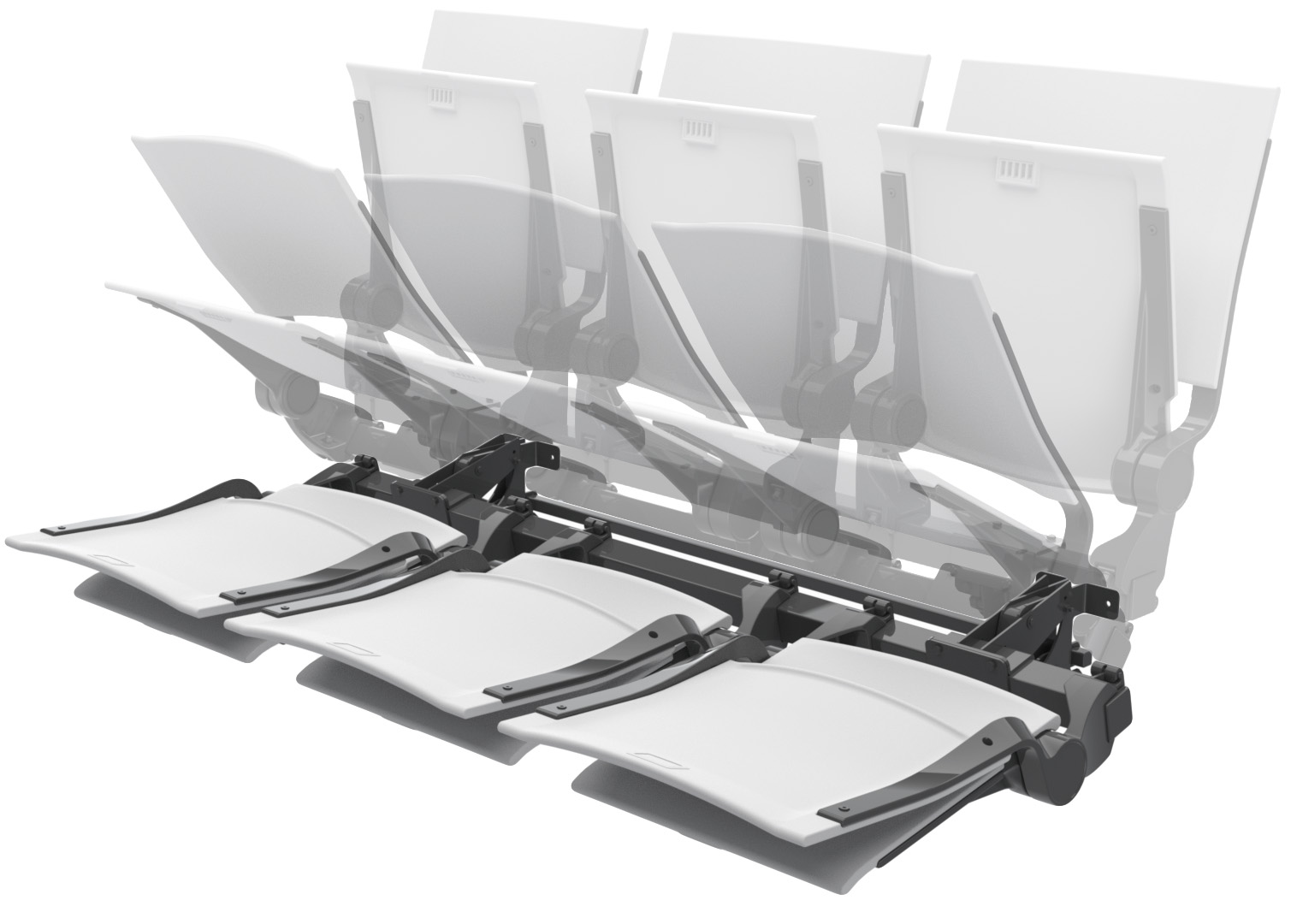 「中立起立機構」により離席時に背と座の間に適度な空間が生まれるため座を開きやすく、スムーズに着席することができます。 さらに、座面を奥に押し込むことで通路幅を広く確保でき、スムーズな通行をサポートします。