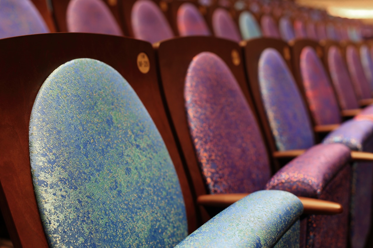 美しいグラデーションが織りなす神秘的な空間で、舞台芸術を味わうことのできる「那覇文化芸術劇場 なはーと」の大劇場。
