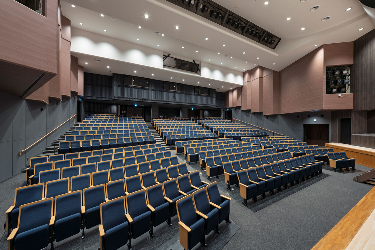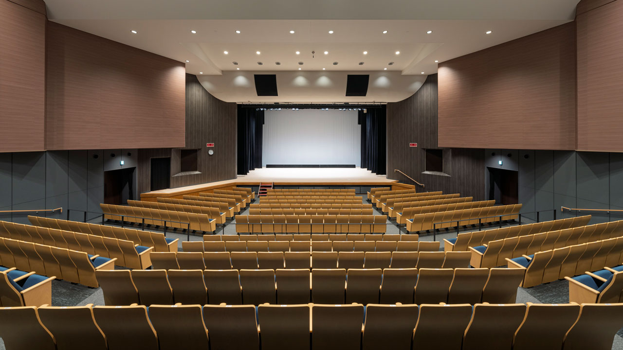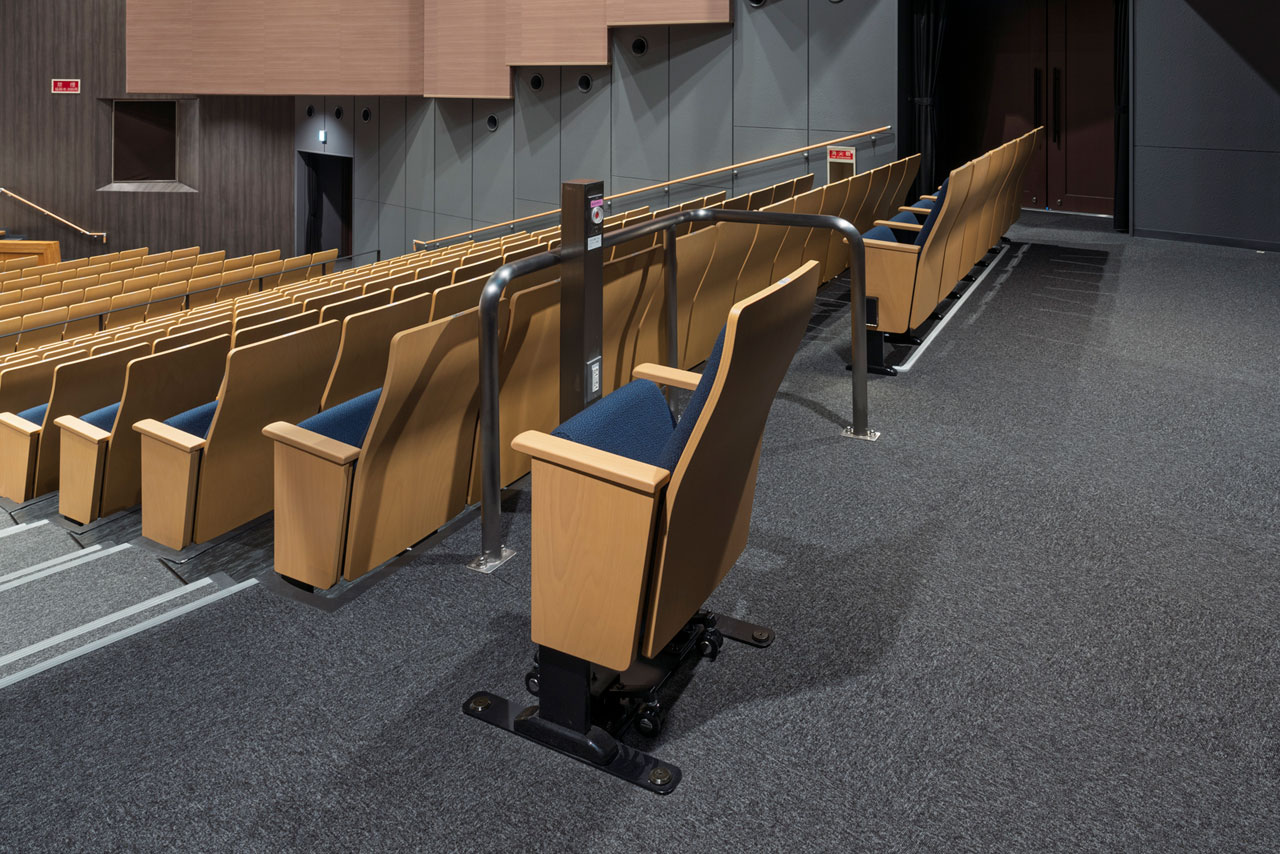 座席の入れ替えにあたっての市からのリクエストは、総席数を維持しながら1席分のスペースを拡張することでした。500席という規模を維持するため、大きなレイアウトの変更は叶いませんでしたが、縦通路の幅をやや狭めてイスの一人分間口を10ミリメートル広く設定し、従来よりもゆとりある座り心地を実現しました。