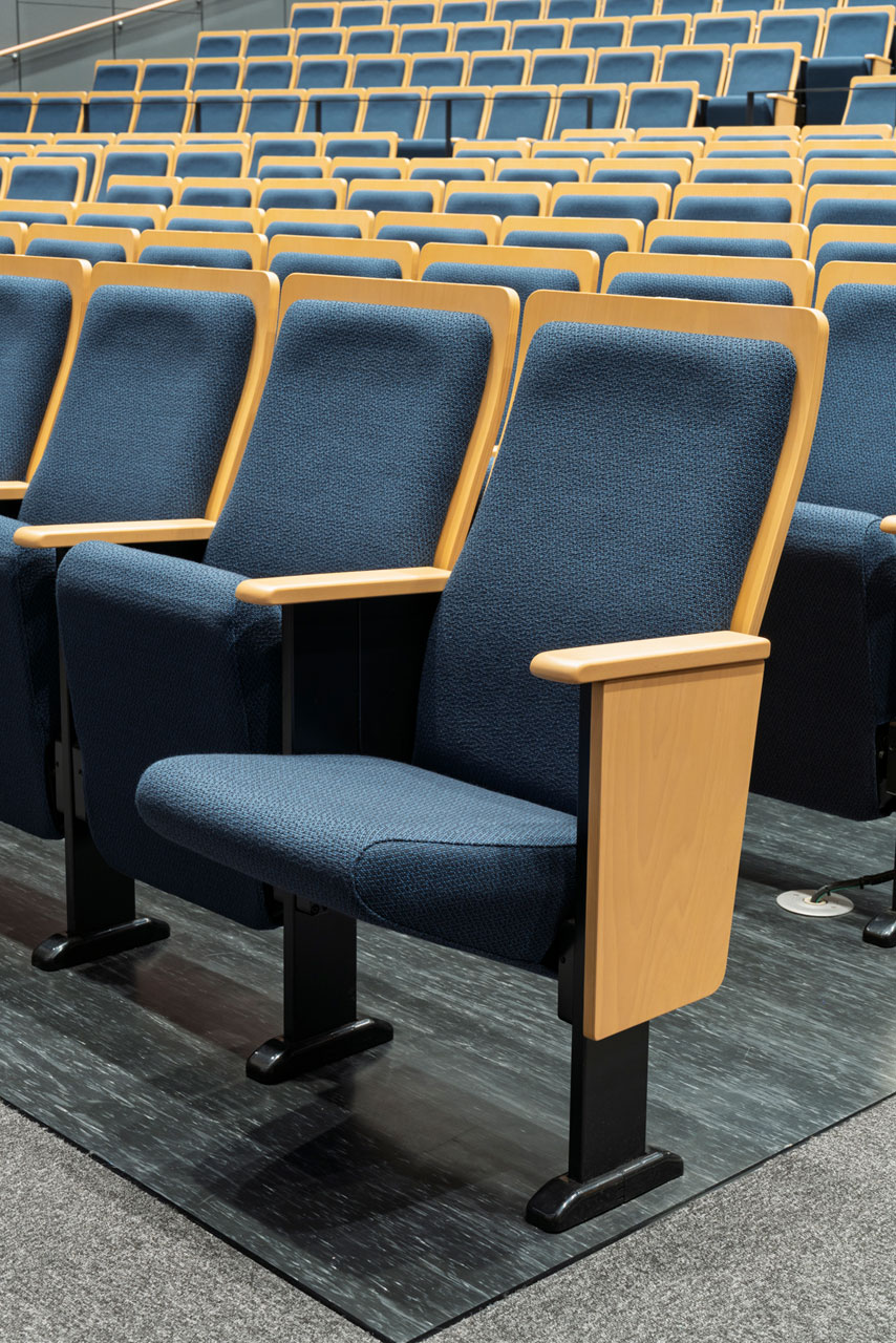 劇場・ホールイス「Cadenza カデンツァ」TS-71シリーズです。関係者がコトブキシーティングのショール―ムを訪れて比較検討を行い、座り心地やデザイン、コストのバランスの良さから選ばれました。