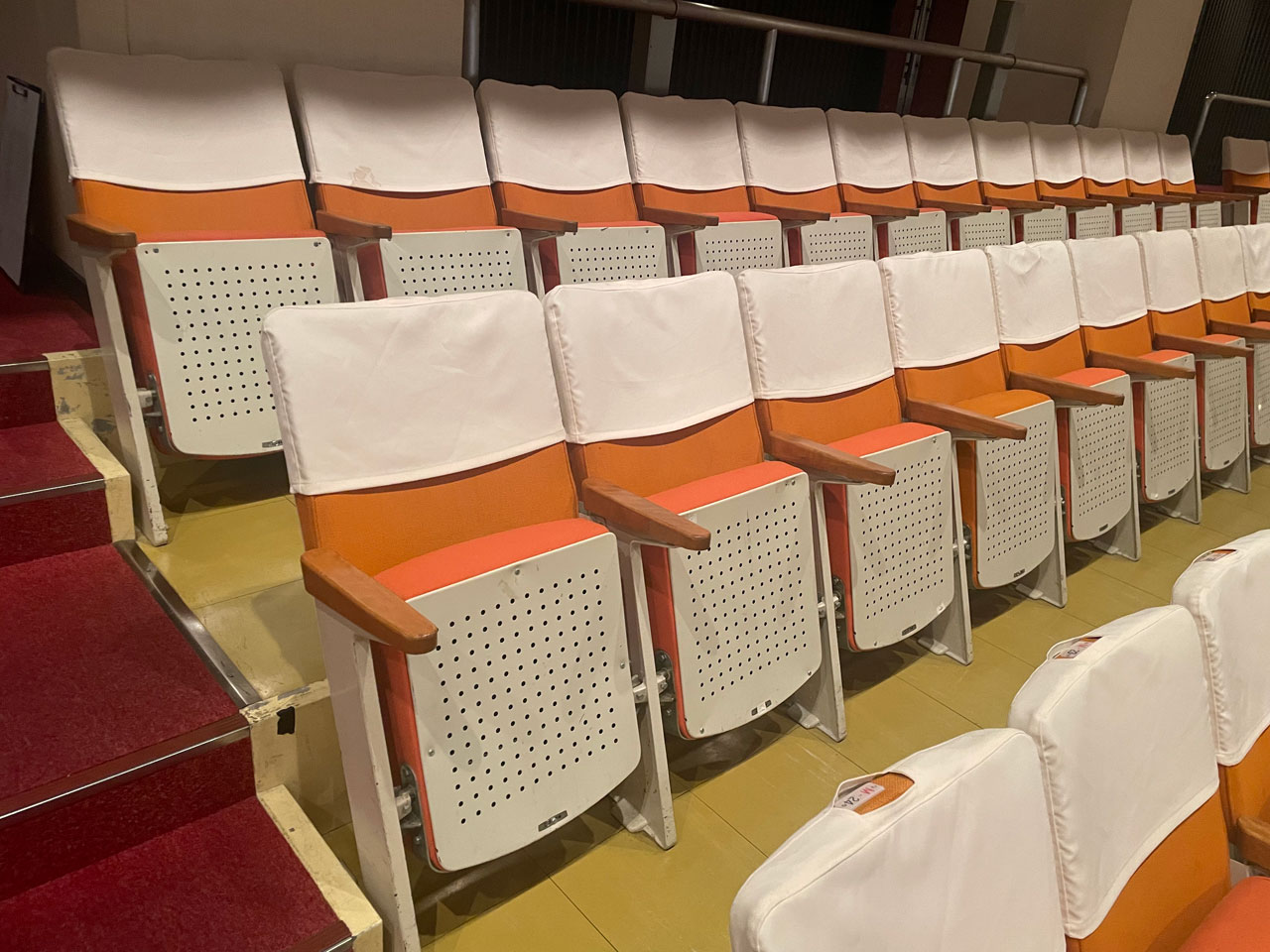 天井の改修工事の際は、作業の足場を作るため、固定された座席を一度取り外さなければなりません。1984年8月の開館以来、長年に渡って利用されていた座席は老朽化が顕著であったことから、これをきっかけに新たなイスへの入れ替えが決まりました。