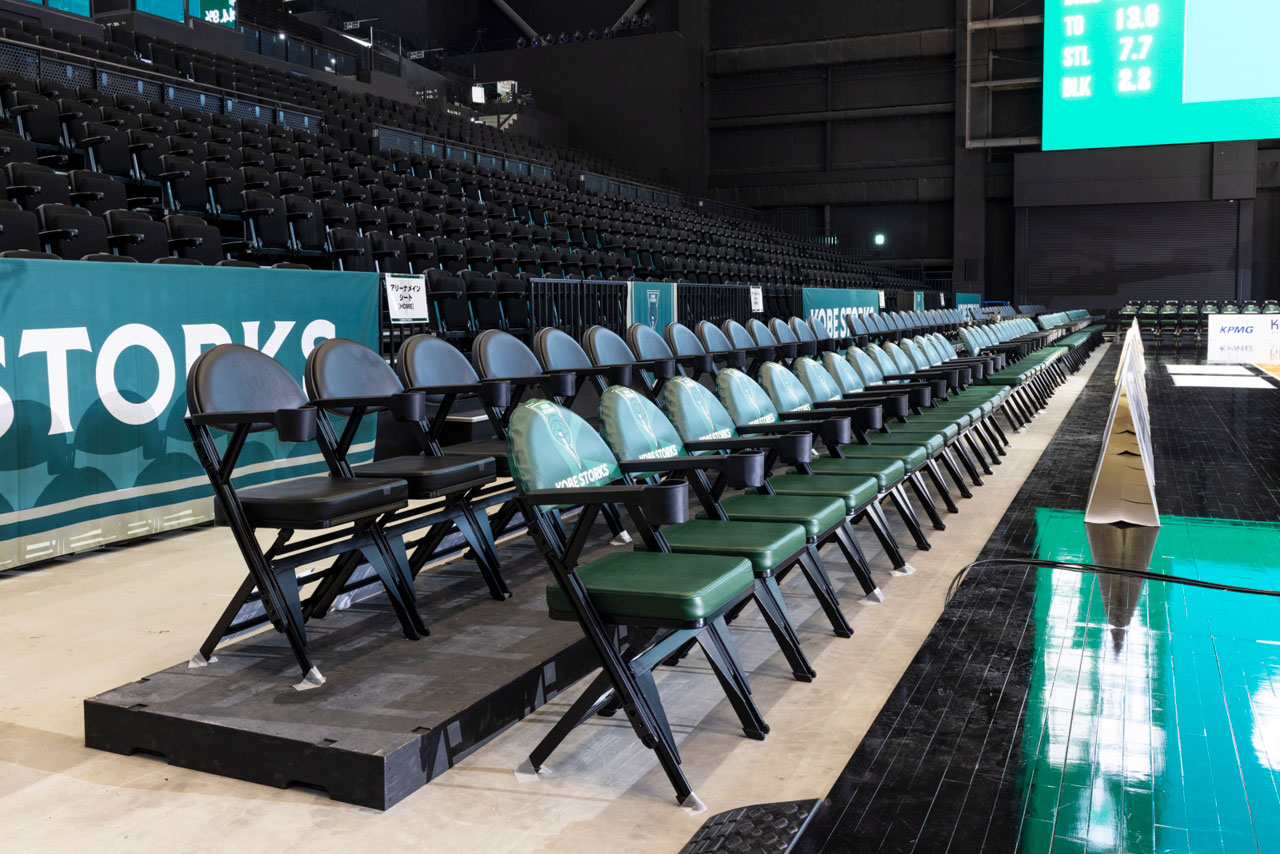 コートサイドチェア SC-700シリーズと並んでも見劣りしません。ライブなど音楽イベントの開催時には、アリーナエリアにScoreを並べ、客席として利用されます。