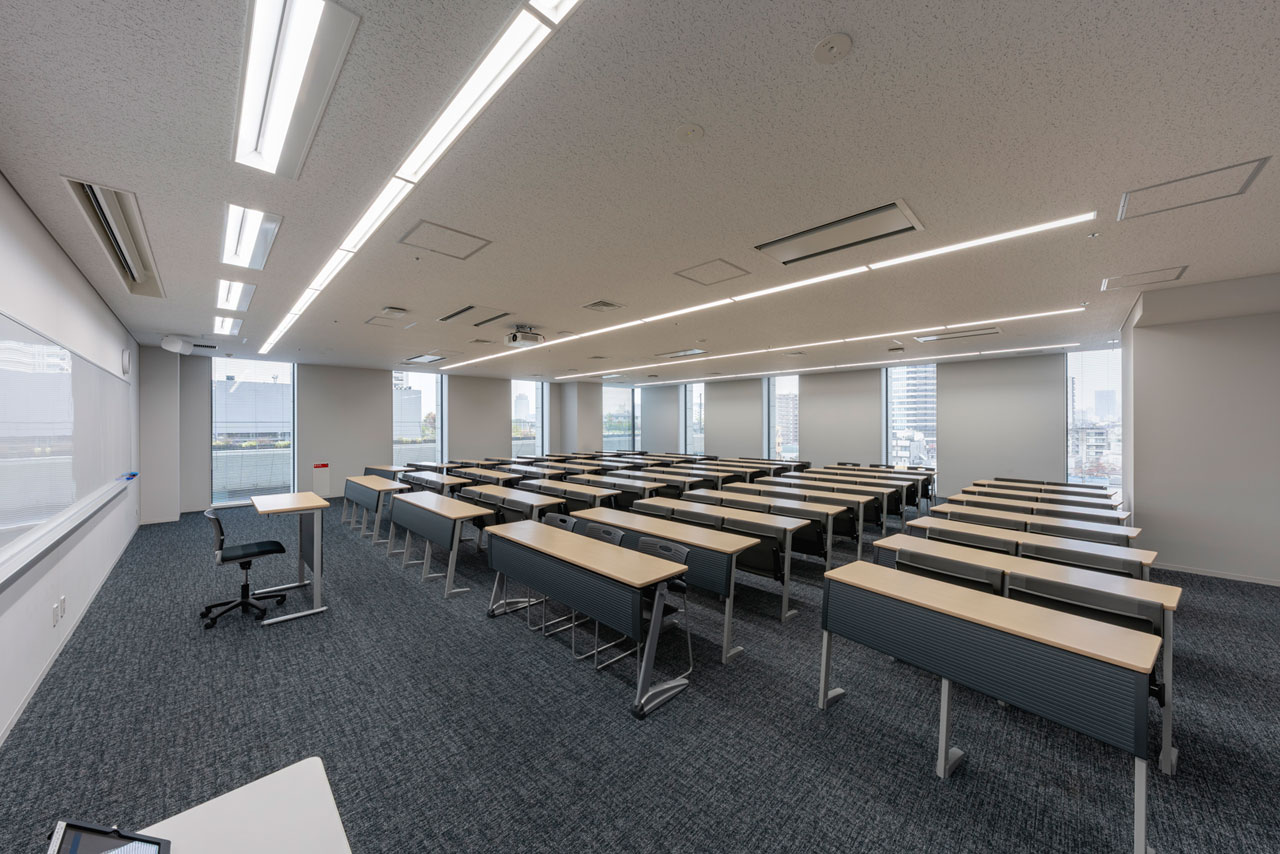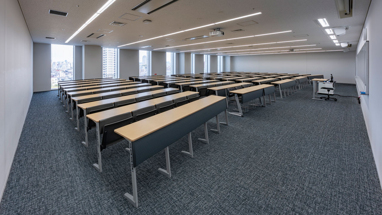 都市型キャンパスのオープン、大教室には既存キャンパスでも実績のあった安定の机イスを