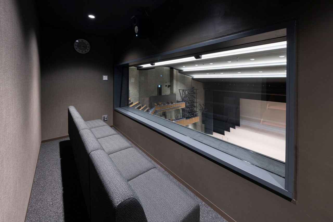 2階席の後ろには、小さな子どもを含む家族連れなどが気兼ねなく鑑賞できるよう、防音の多目的室も完備。ソファタイプの席を5席、客席と同じ仕様のイスを5席導入しました。