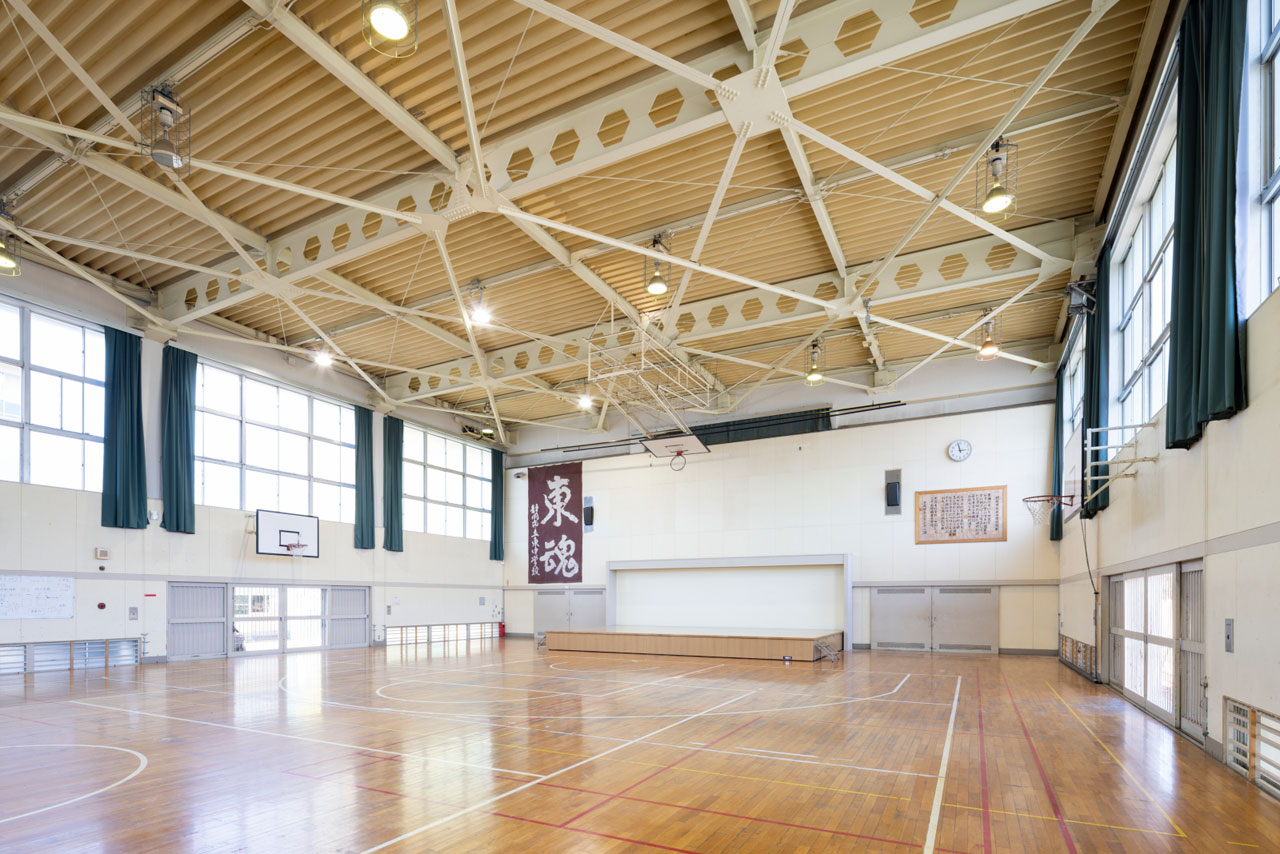 歴史ある体育館を、より使いやすく。動線を確保しつつ大型ステージを導入