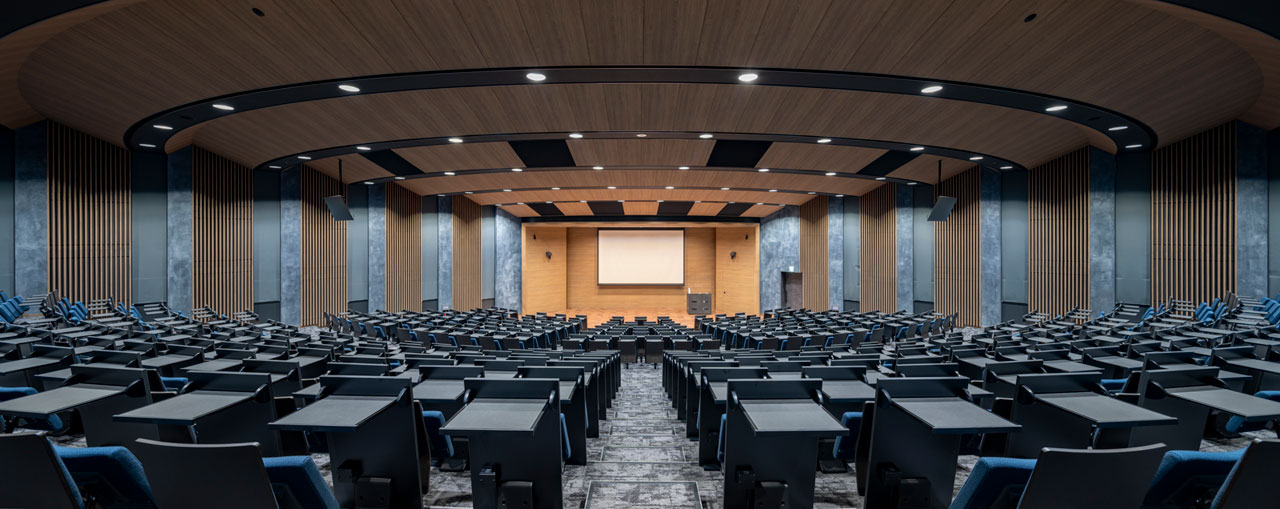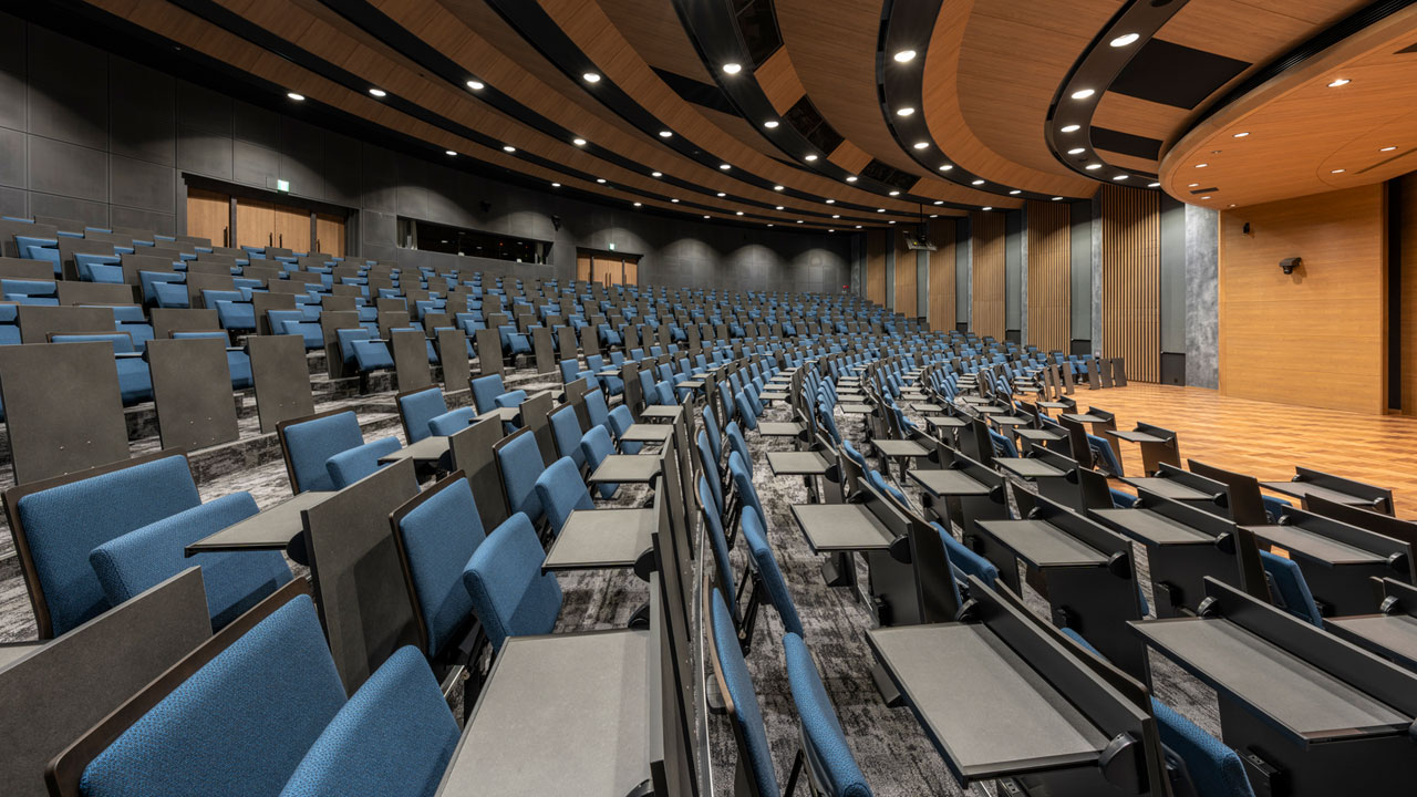 ゆとりと一体感を追求した、学びの質を高めるユニバーサルな講義空間