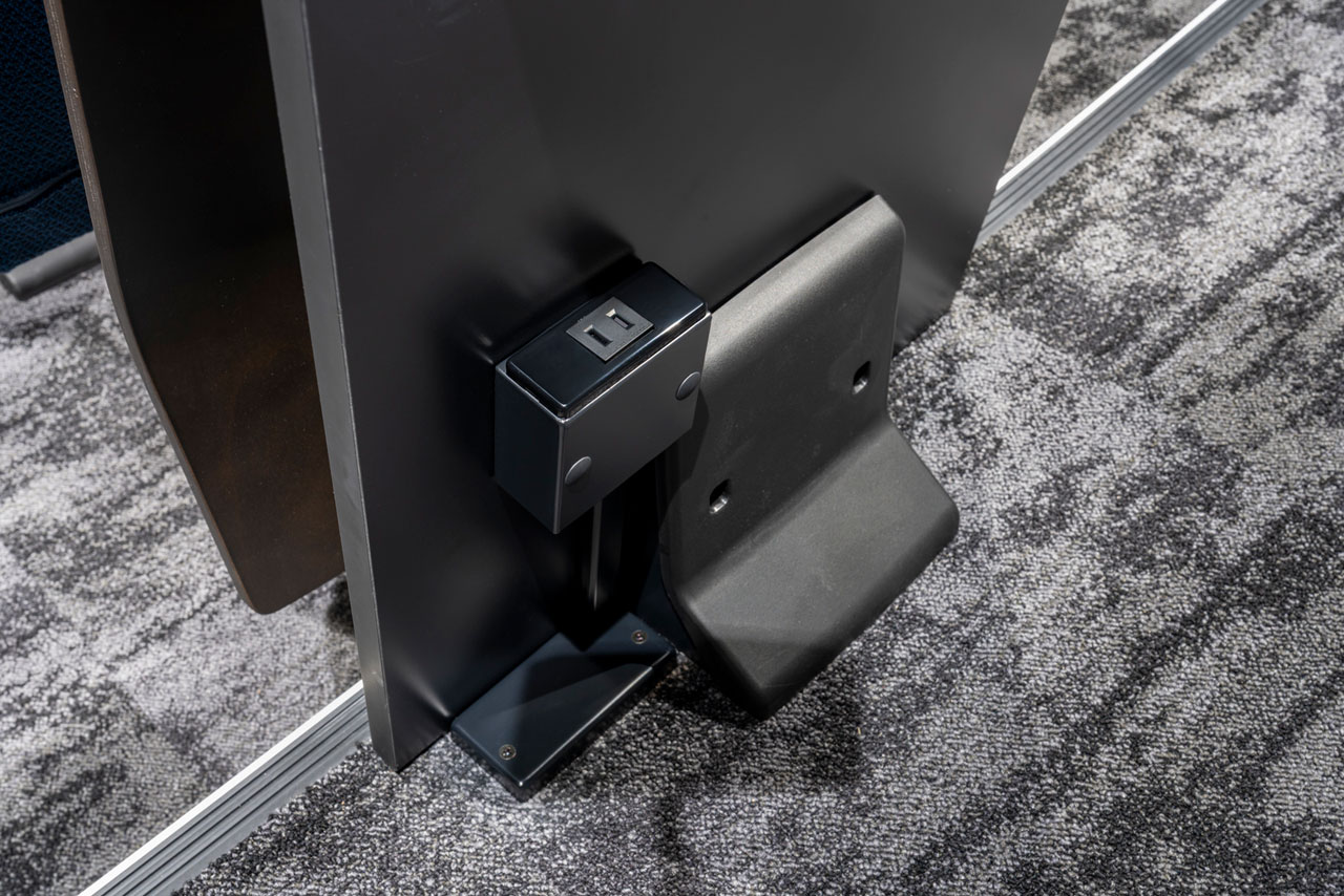 LT-100」は、必要なときだけ引き出して使えるA3サイズの収納式で指紋レス仕様になっています。足元には全席にコンセントを完備しており、講義以外にも多目的に活用できる空間になっています。