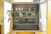 電気工事範囲は制御盤を含む二次側の配管、配線工事までとさせていただきます。建築側で制御盤までの一次側電源をご用意ください。ご用意いただく電源は本体駆動用として三相200V、通路灯用として単相100V専用回線の2種類です。※容量はご計画の規模、設定条件に