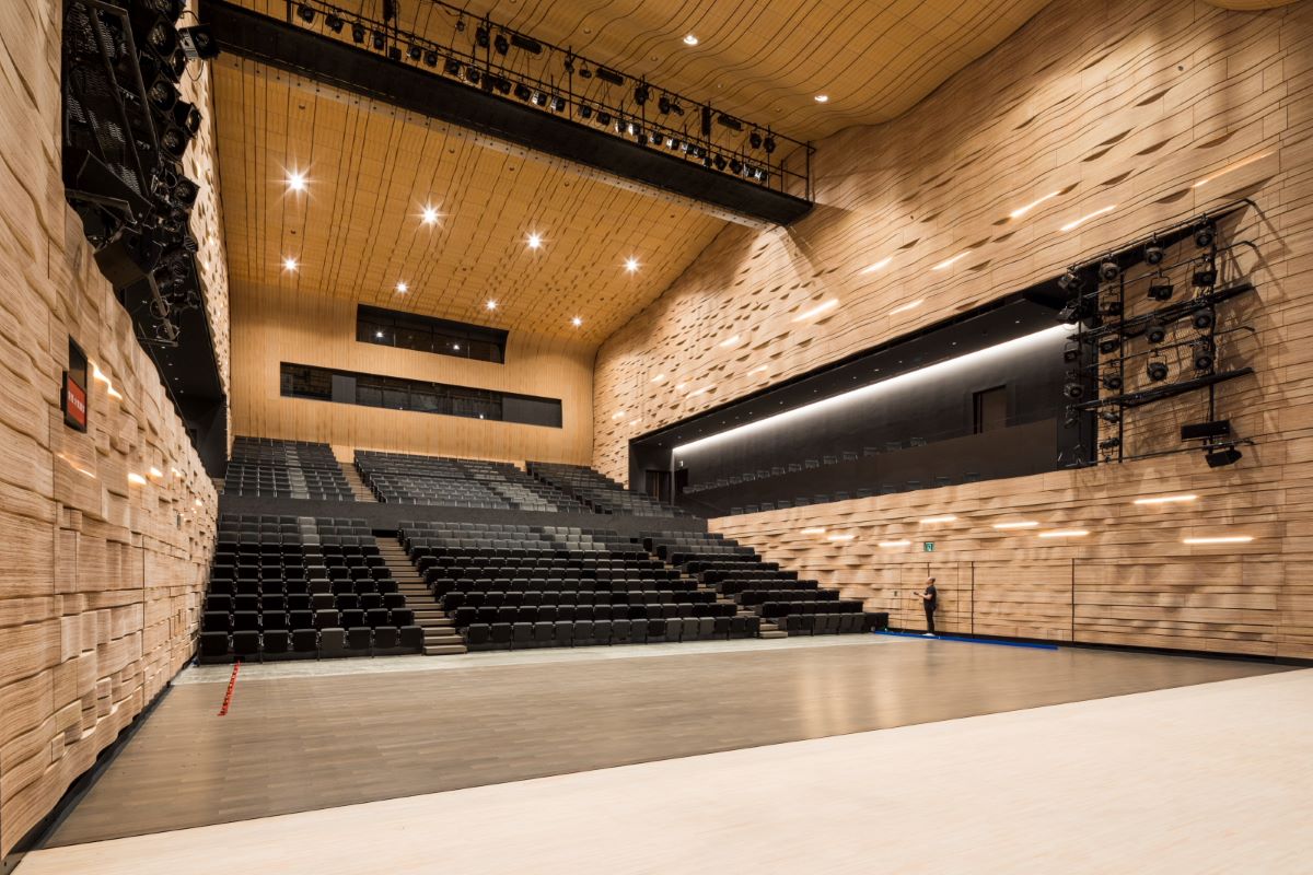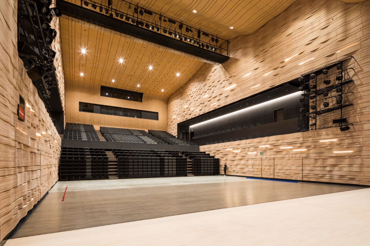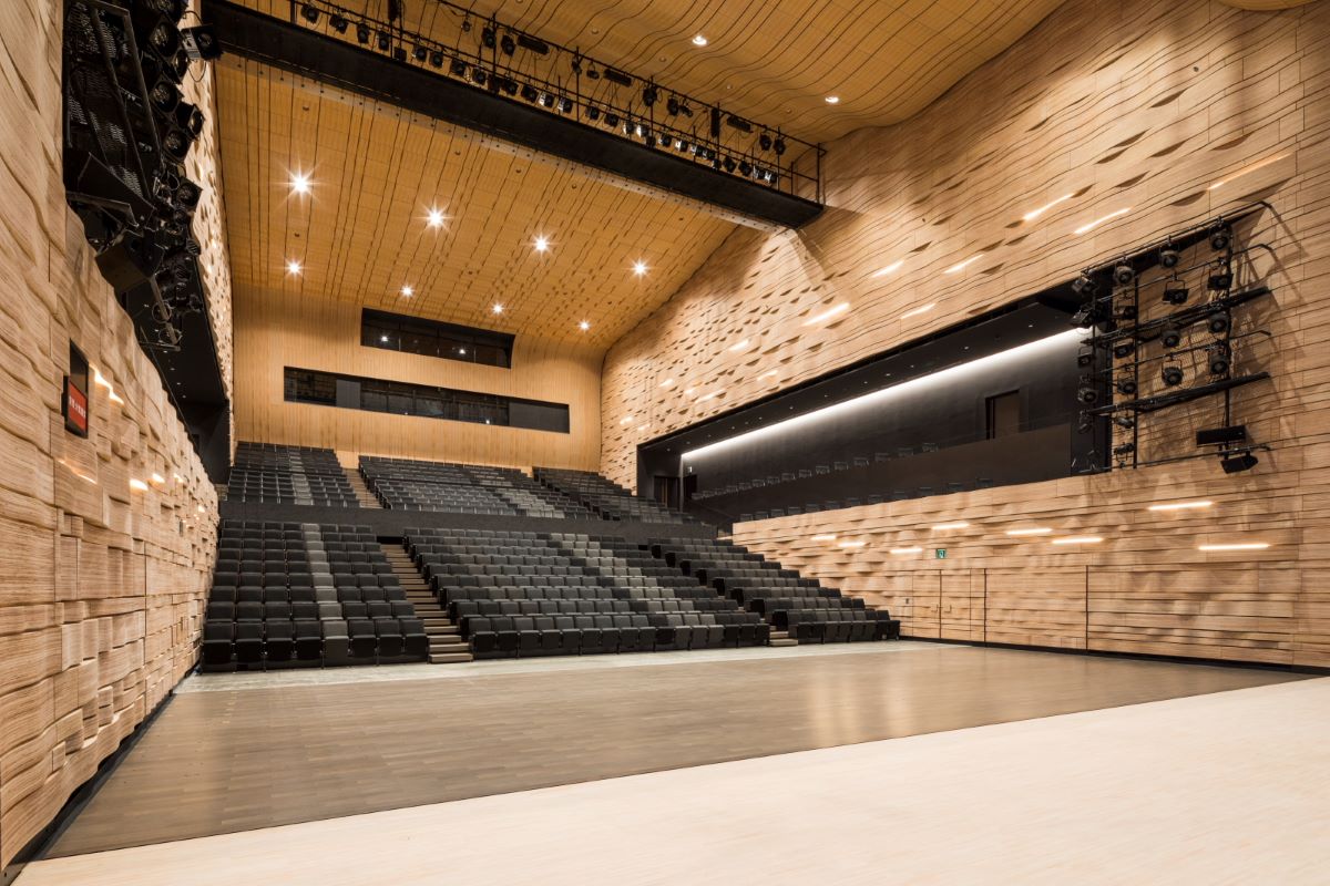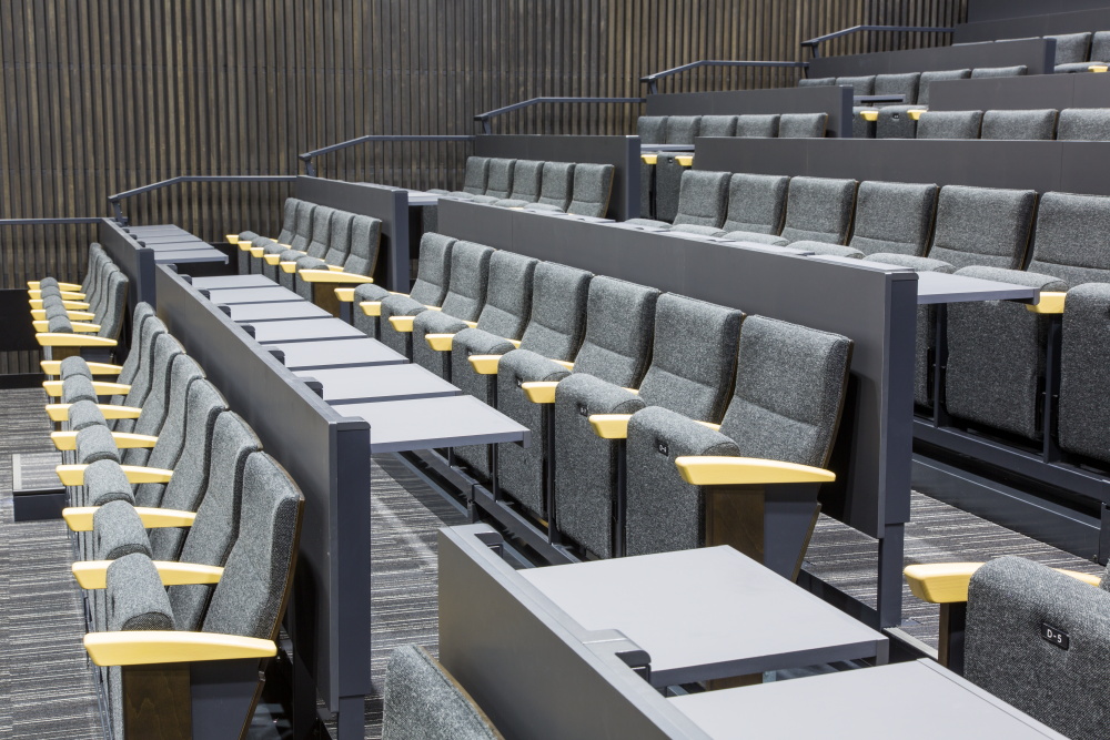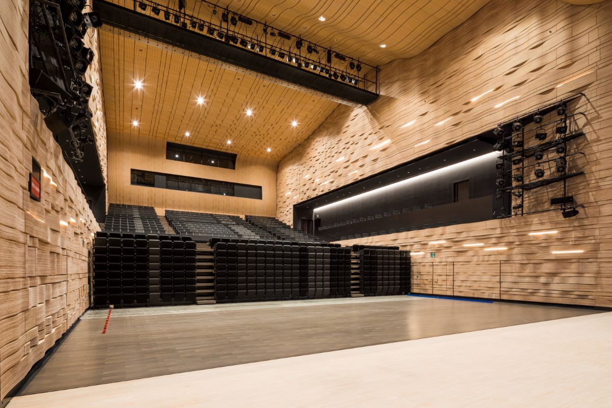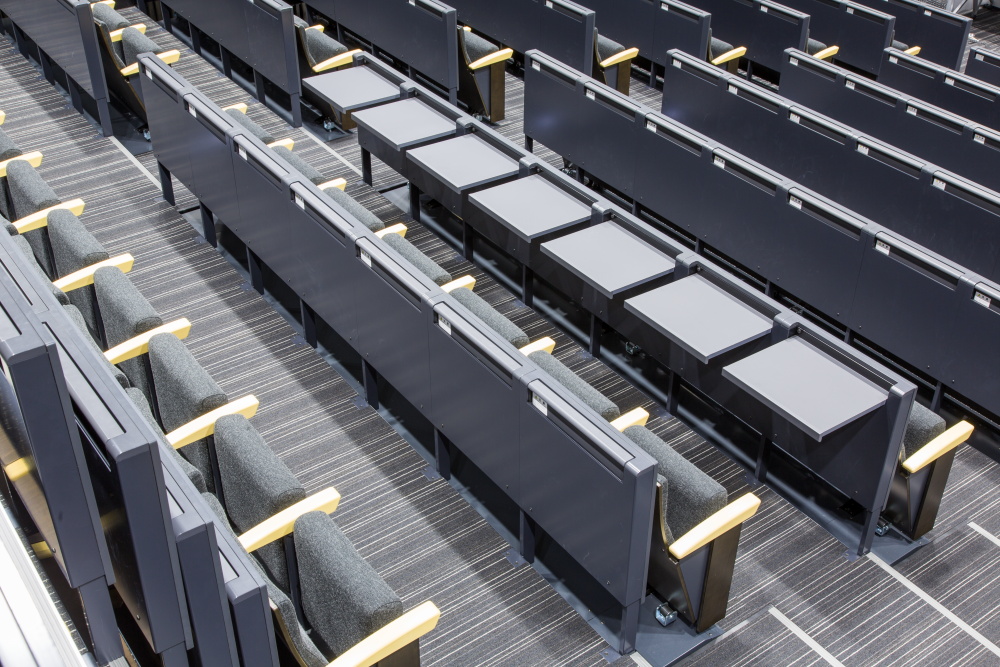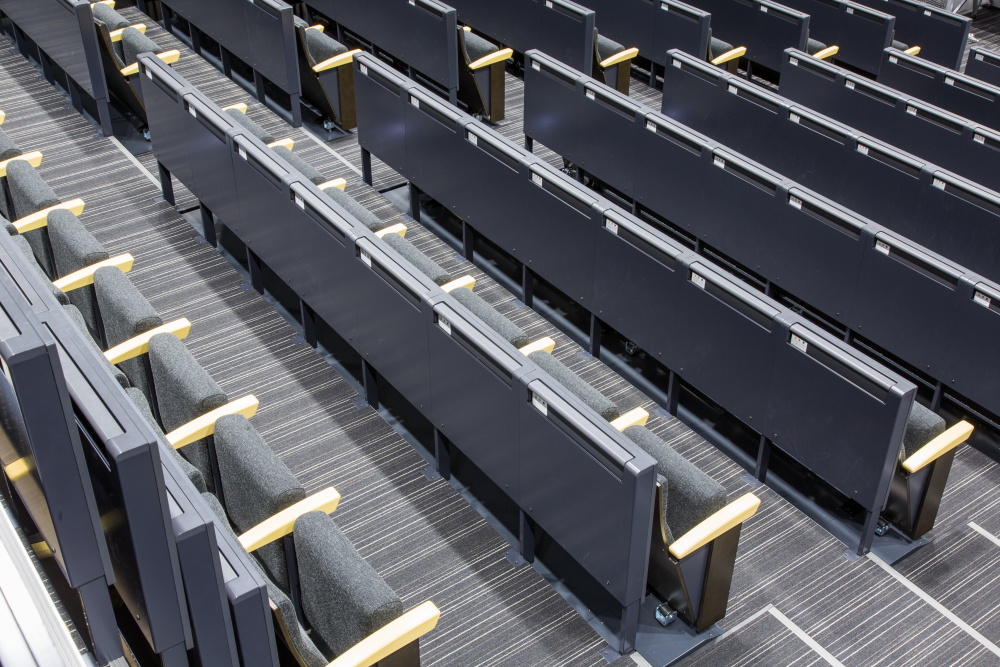 移動観覧席でありながら、新基準を設けた開発により、固定式の劇場イスと同様の「品質」と「快適性」を装備しました。時代が求めるコミュニケーションの広がりと進化へ向けて、これまでに育まれてきた劇場の格調をそのままに、新時代を見つめた空間活用を実現。進化した可変劇場イスにより、これまでの固定席で構成されていた本格的なホールの多目的な活用を可能としました。上品で格調高い空間を生み出す、最新の技術が詰まった劇場イスです。