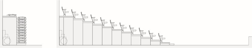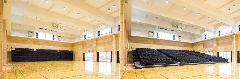 収納ボックス付きでありながら、コンパクトな設計を実現しました。特別授業や講演、セミナーなどの多目的利用を目指す施設に最適です。