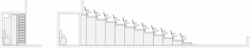 波形スプリングを内蔵し、固定式の劇場イスと同等の構造を採用した座。他の移動観覧席のイスとは一線を画す、究極の快適性を実現しました。