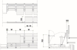 5ATRは背裏に天然木を配し、シンプルなデザインの中に高級感を演出。背座クッションにはウレタンを用い、長時間の着座に耐えられる座り心地を目指しました。肘当の天然木は、柔らかな落ち着きのある触感を提供します。多目的ホールから学校の講堂まで、幅広く多彩なニーズに対応します。5Rは着席時にイスの背上部が湾曲し、安定した着座姿勢を保持するフィットバック機能を搭載。座は緩やかに起立する座自動緩起立機構を装備しており、離席時の衝突音や振動が発生しません。Sはラインナップの中で最もシンプルで、コストパフォーマンスの良い製品です。張地には通気性・強度性共に優れたメッシュ布地を採用。体育館や講堂を中心に、主に学校で高いニーズを誇ります。