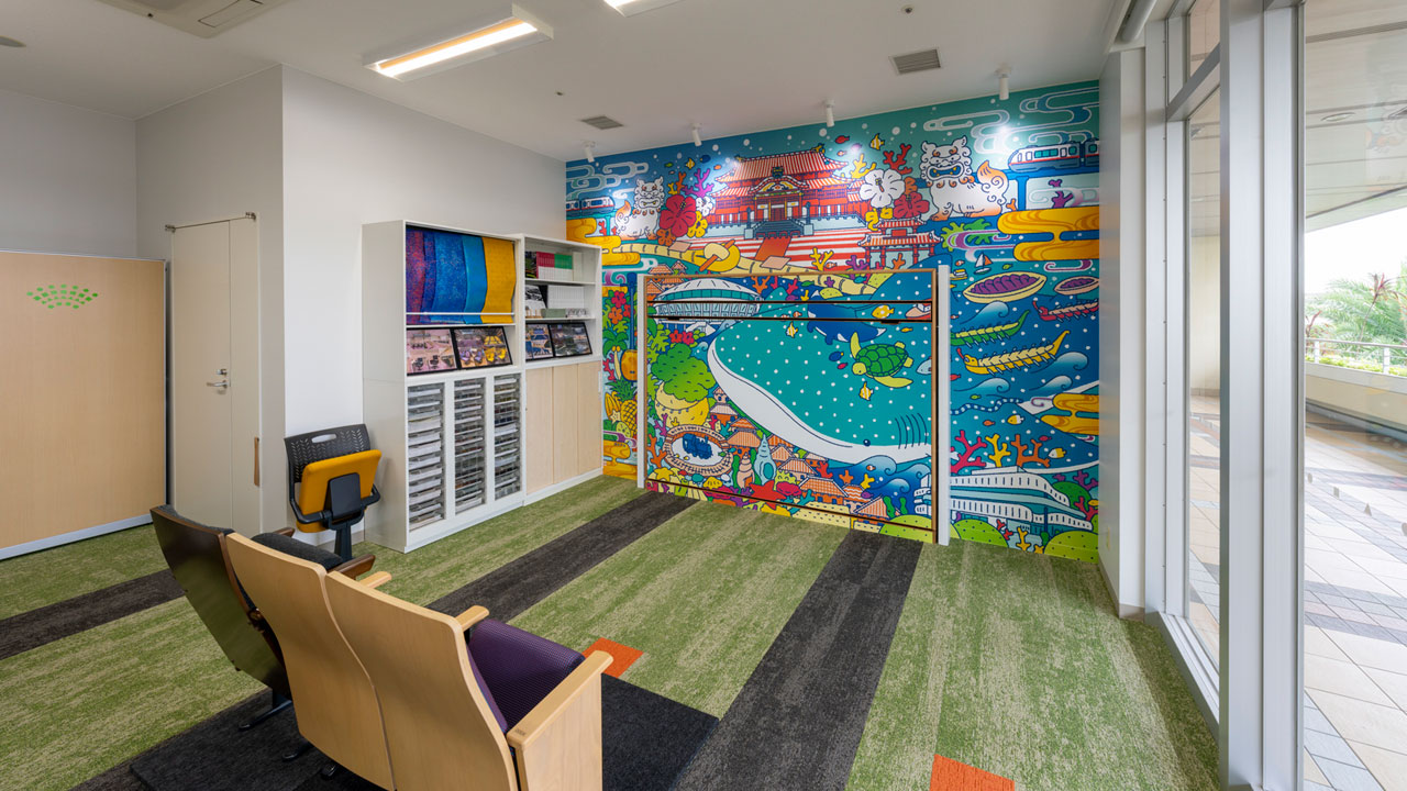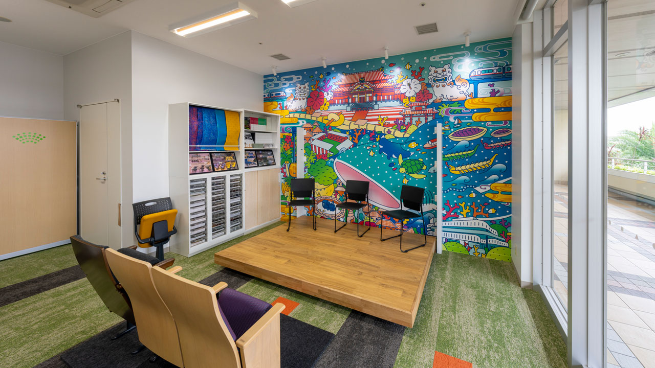 劇場イスや沖縄をモチーフとした特注張地の実物、壁面収納式ステージ、カプセルベッドなどの、さまざまな製品をご体感いただけます。