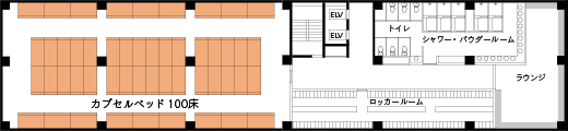 部屋の中央部にカプセルベッドを設置し、開口部の向きを左右交互に設ける配置によって、個室に近い空間をつくることができます。